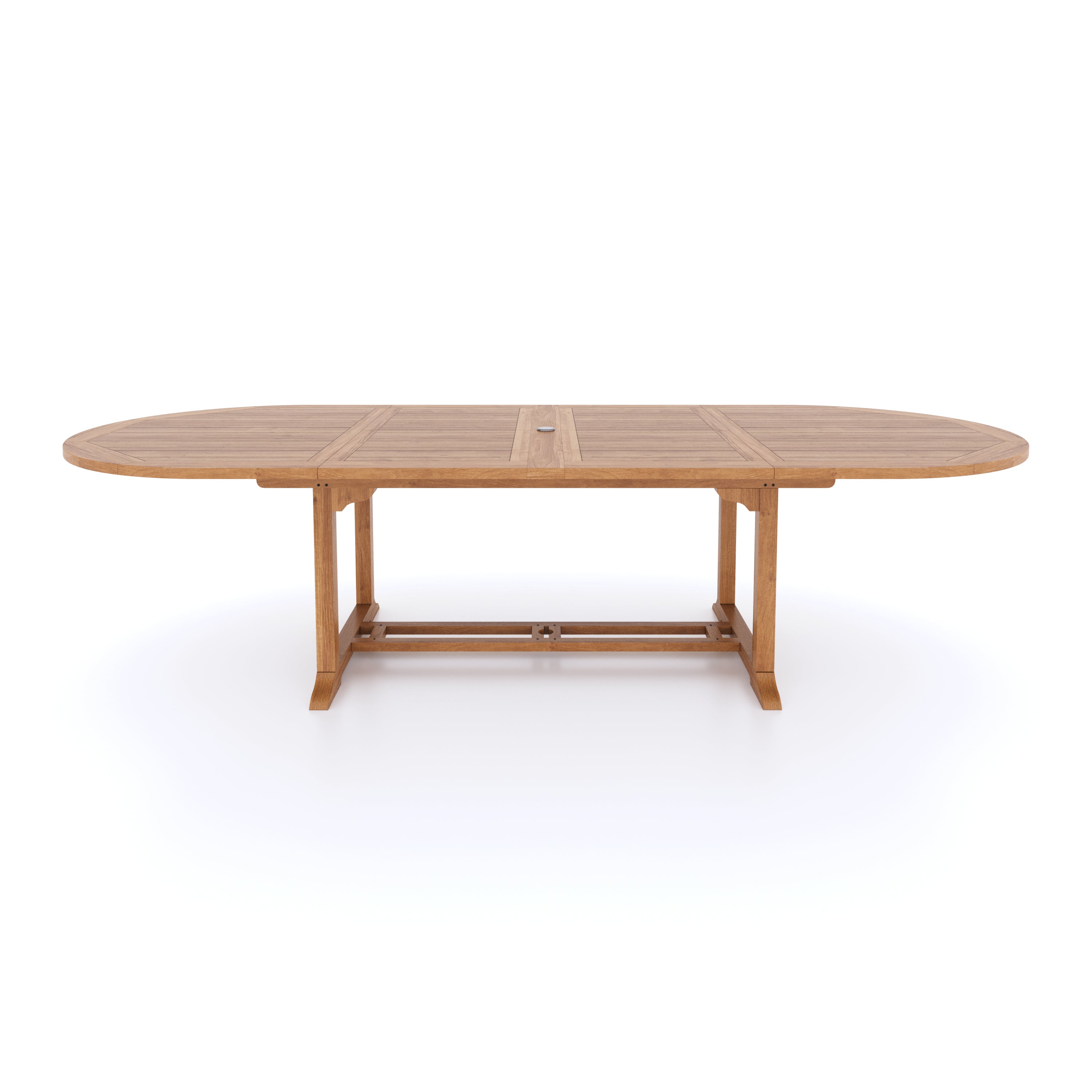 The table is parasol-ready with a discreet plug for when shade isn’t needed. It’s details like this that make the athens teak dining set more versatile. The oval shape provides generous elbow room while keeping the conversation flowing easily.