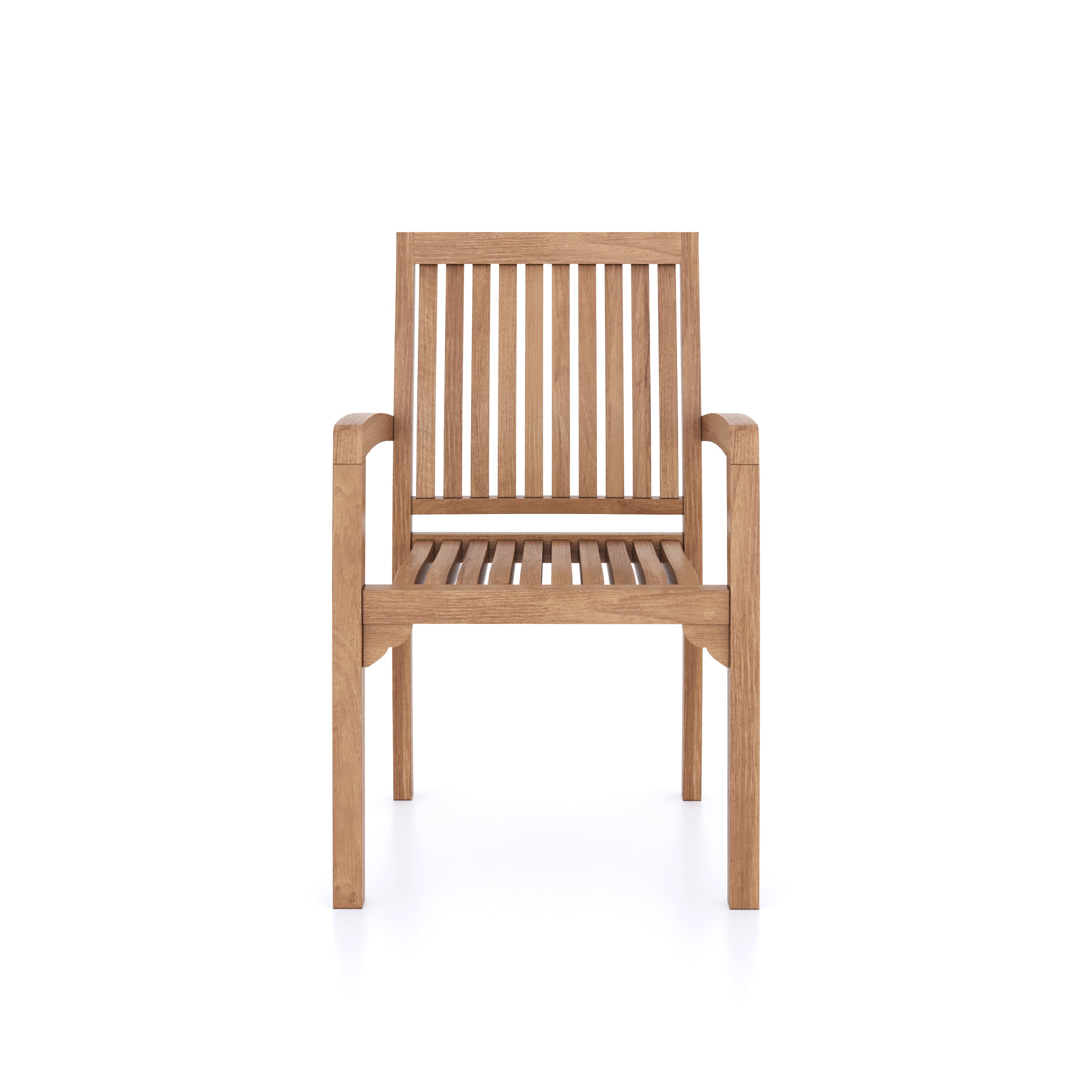 The centrepiece of this outdoor teak garden dining set is the oval table, which extends from 180cm to 240cm with ease. Thanks to the double-leaf mechanism, you can adjust the length in seconds, giving you more room when you need it and saving space when you don’t. The top is 4cm thick, giving the whole table a sturdy, confident feel.
