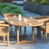 Eterna Home are delighted to offer our luxurious Salerno double leaf teak garden dining set. Featuring our 180-240cm Oval Extending Table, with 6 San Francisco Chairs and cushions.