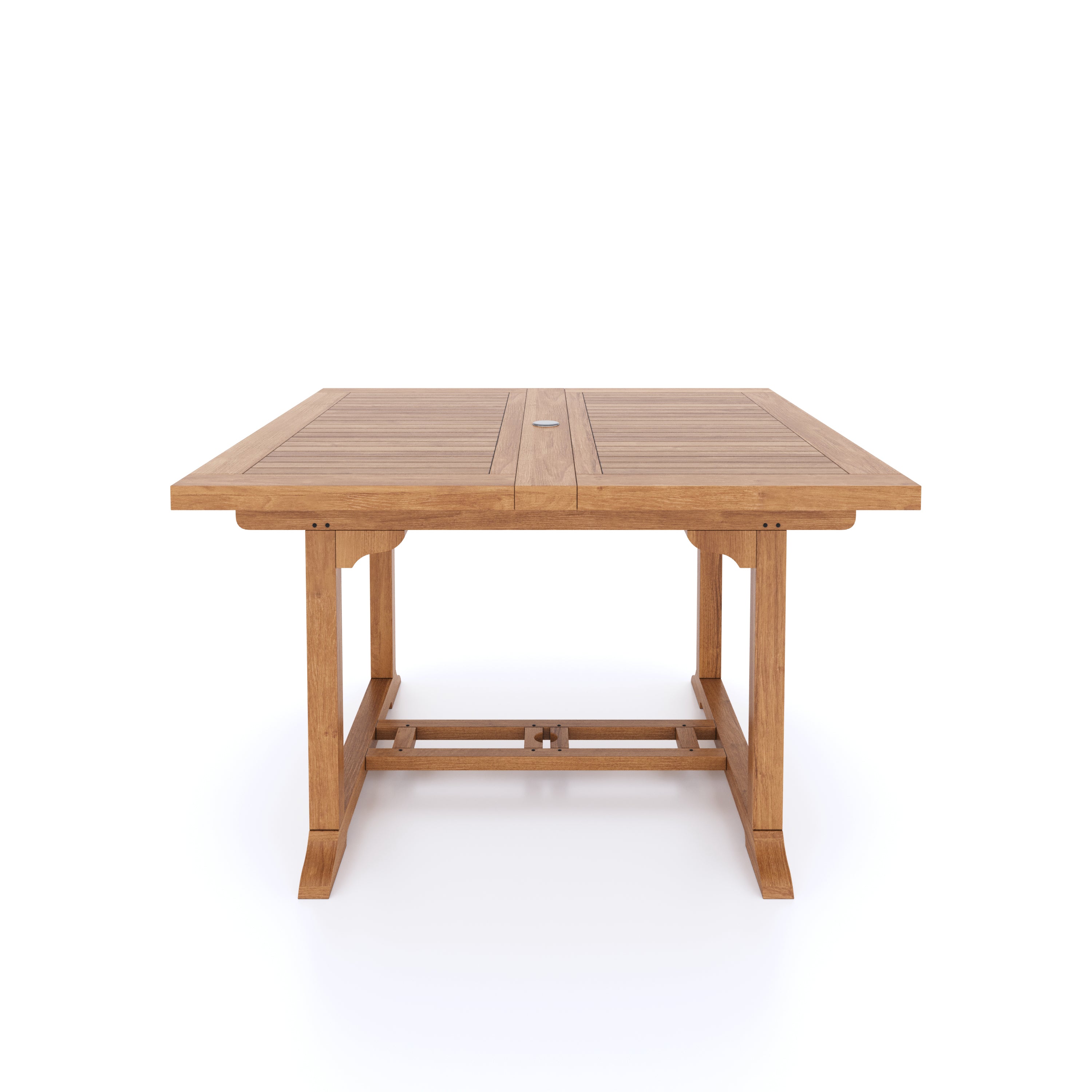 Each table comes pre-drilled for a parasol, with a flush-fit teak plug included. Want shade on summer days? You’ve got the option. Prefer a clean table surface? The plug fits seamlessly into place.