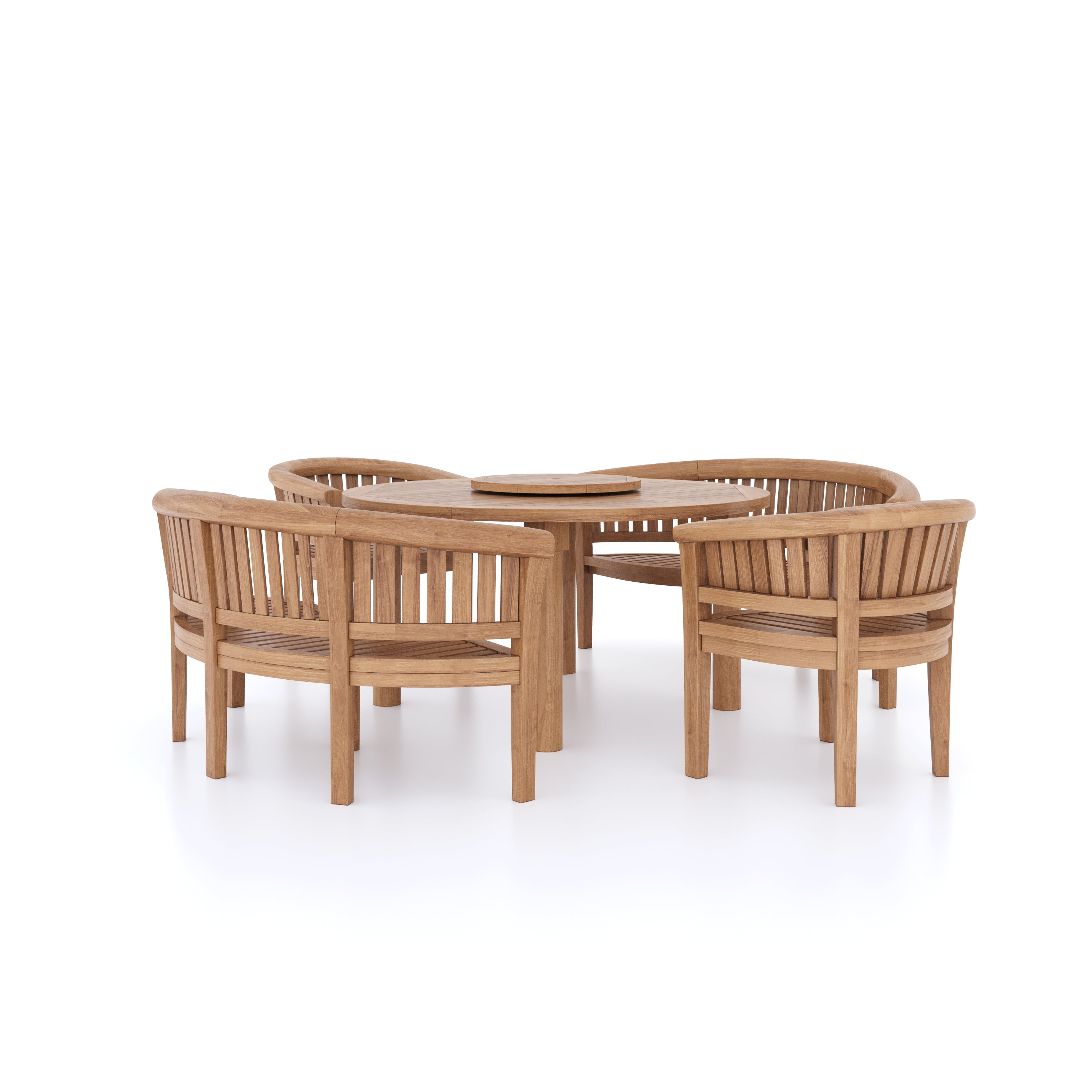 Bercial Set 150cm Maximus Round Teak Table 4cm Table Top (2 San Francisco Benches, 2 San Francisco Chairs) Cushions included.